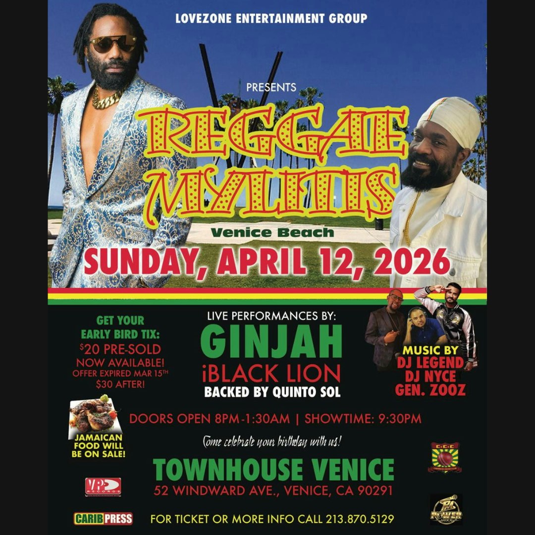 A night of reggae from Carib Press. With Djs and a special live performance from GINJAH backed by none other than LA's own, Quinto Sol. Jamaican food will be sold and served outside.