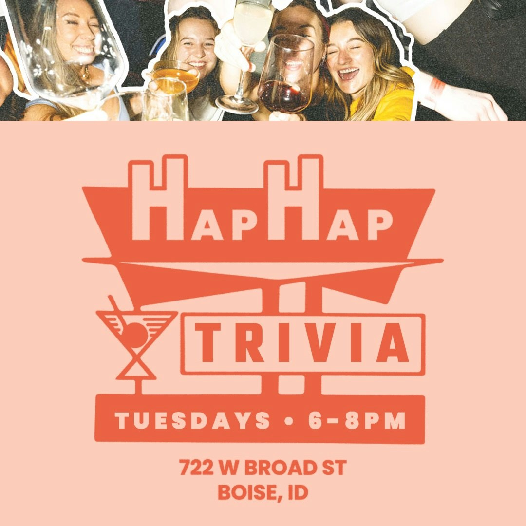 Tuesday, April 14th TRIVIA! Every Tuesday HAP HAP LOUNGE FREE 6pm - 8pm 21+