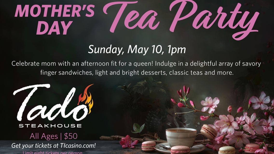 Celebrate Mother's Day with an afternoon tea fit for a queen! Indulge in a delightful array of savory finger sandwiches, light and bright desserts, classic teas, and more. This event is welcome to all ages, with general admission table seating. Guests will be seated by party on a first come, first served basis upon arrival. The ticket limit is 8 per customer, and each table/party can accommodate up to 8 guests. All tickets feature handicap accessibility accommodations. For questions, please contact boxoffice@ticasino.com.