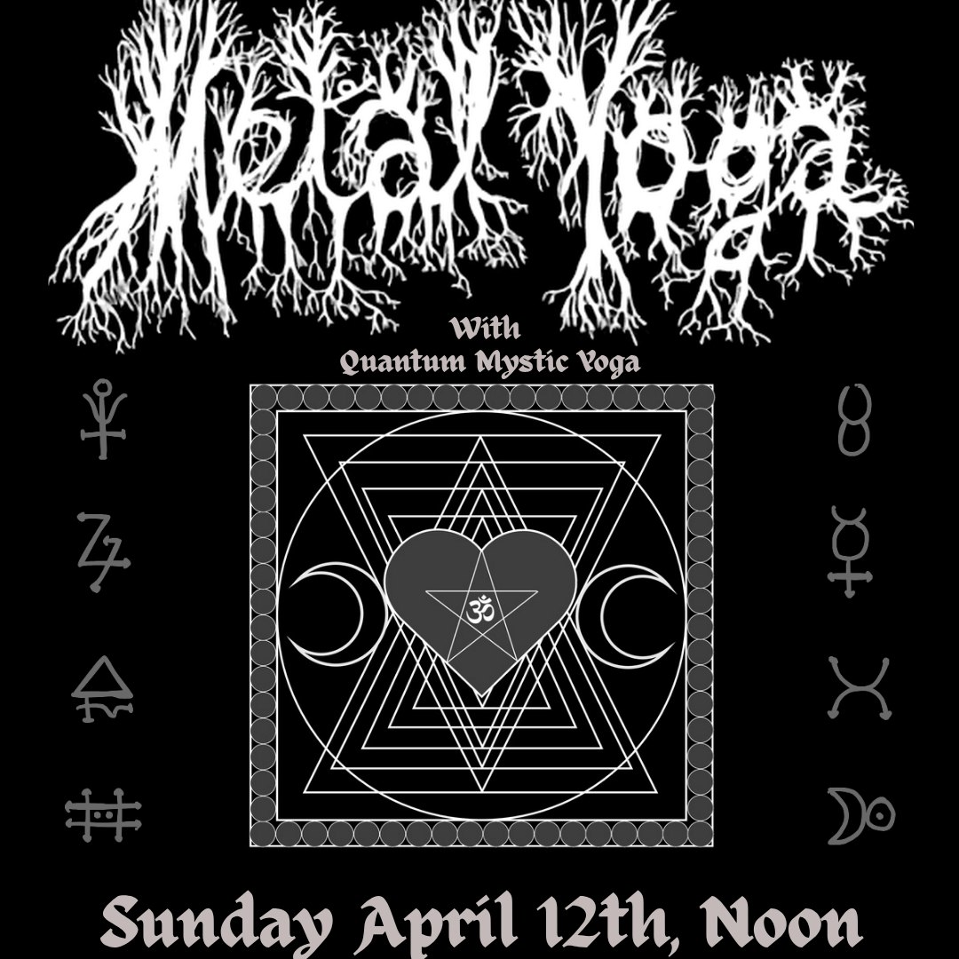 **METAL YOGA by Quantum Mystic - SUNDAY APRIL 12th 12:00PM** **This class will take you on a journey through the abyss. Where metal heads and misfits alike get to transform. Plan to sweat, stretch, growl and reset through this power flow.** - $12 - Card / $10 Cash - Check in begins at 11:30am where you will sign a waiver and find your spot on the floor. - Bring your own mat / All experience levels welcome - We will have the lights low so everyone can feel safe practicing at their own pace. - Class cost is strictly for class, so we'd love if you hang out after and grab a drink or grub at Burial Beer next door or upstairs at VISUALS Rooftop Bar - *Quantum Mystic is a licensed instructor that specializes in power yoga*