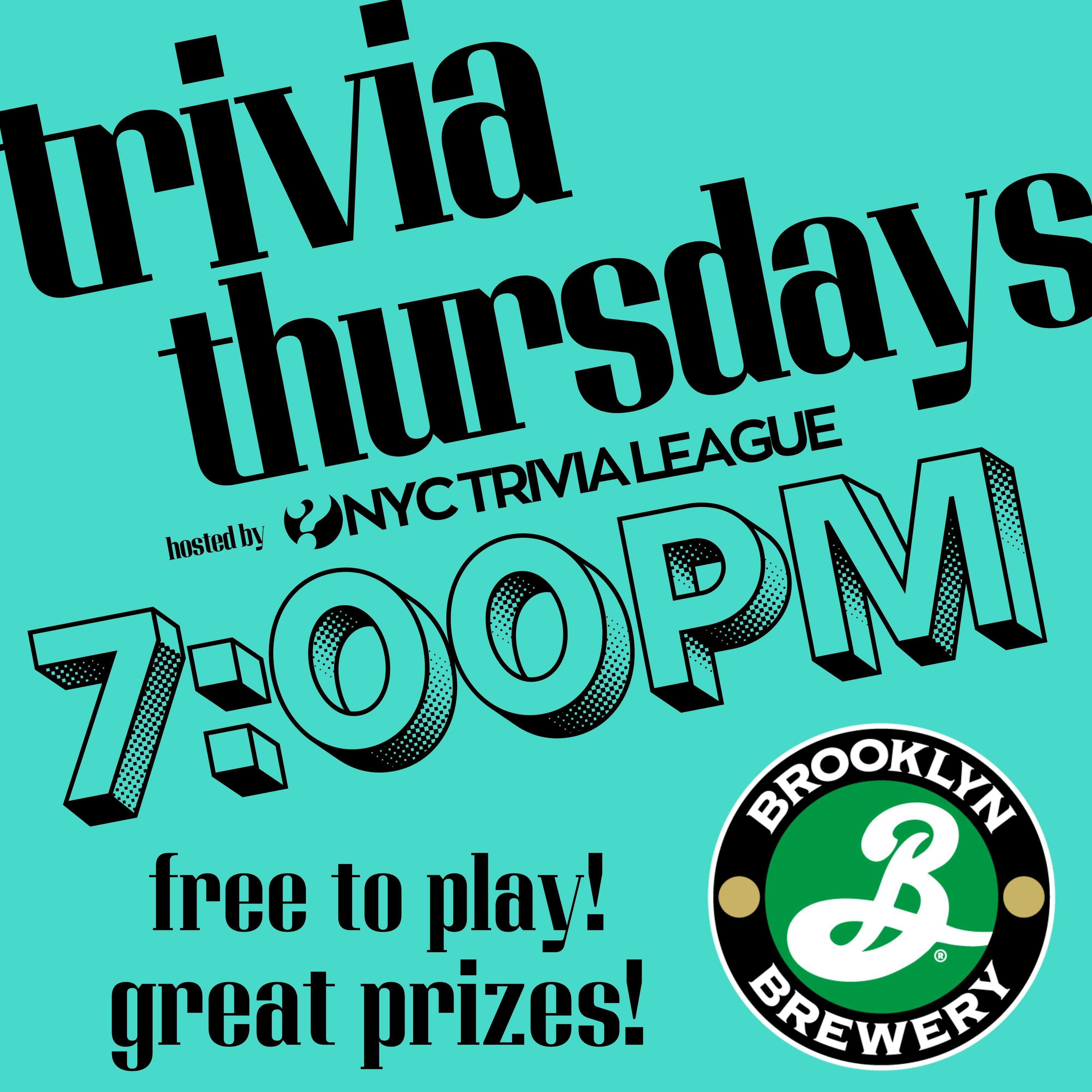 Enjoy a free trivia night every Thursday at the Brooklyn Brewery Tasting Room! Compete for great prizes, with teams of up to six players. Join the NYC Trivia League and battle for thousands of dollars in the season-end King's Cup. It's free to play and fun to win!