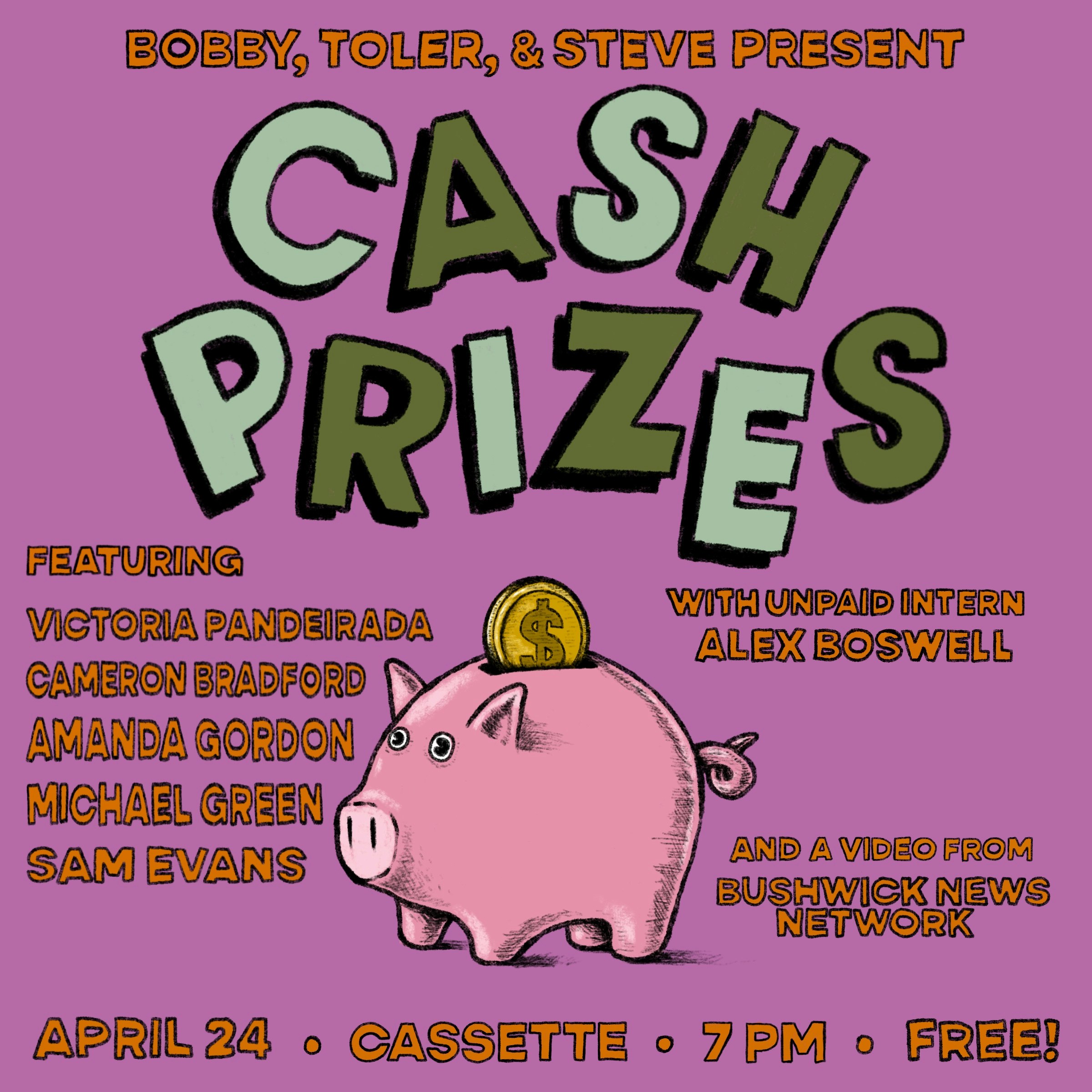CASH PRIZES COMEDY FEATURING: VICTORIA PANDEIRADA CAMERON BRADFORD AMANDA GORDON MICHAEL GREEN SAM EVANS ALEX BOSWELL BUSHWICK NEWS NETWORK FREE FREE FREE